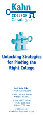 Through an individualized college advising approach, Kahn College Consulting develops personal strategies to meet your needs. Our goal is providing you with a systematic approach and professional guidance through the many phases of the college search and application process.